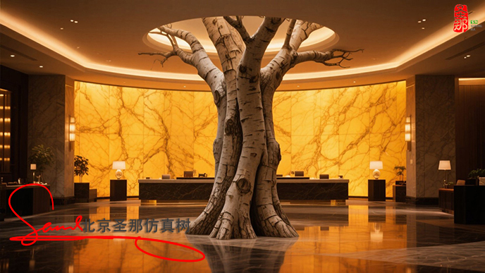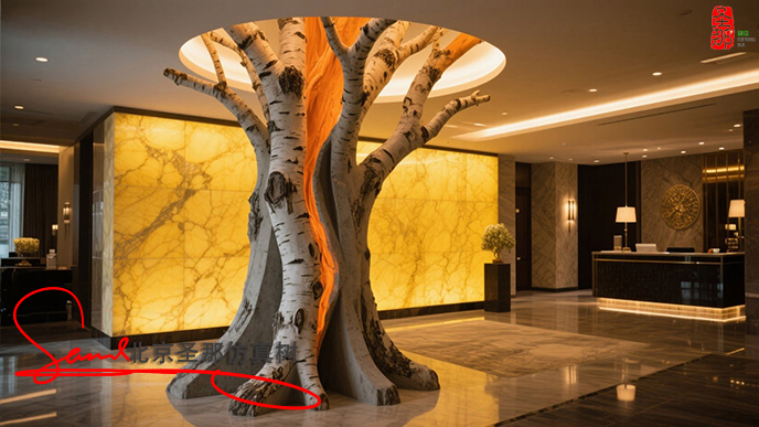 項(xiàng)目描述:玻璃鋼仿真樹可以圍繞溫泉池布置,營造出熱帶叢林或原始森林的環(huán)境。例如,在某些溫泉度假村,玻璃鋼仿真樹與假山和流水相結(jié)合,營造出“古樹根部涌出溫泉”的視覺效果,既提供遮蔭,又強(qiáng)化了“自然愈”的主題。一些設(shè)計(jì)還將玻璃鋼仿真樹與照明系統(tǒng)相結(jié)合,在夜間將溫暖的黃色燈光投射到樹皮紋理上,營造出神秘的洞穴氛圍。