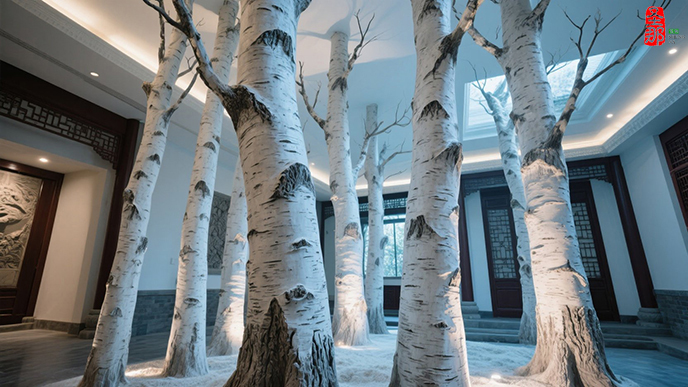 銀白雅韻映奢境!為北京博雅會(huì)所制作的高端仿真白樺樹