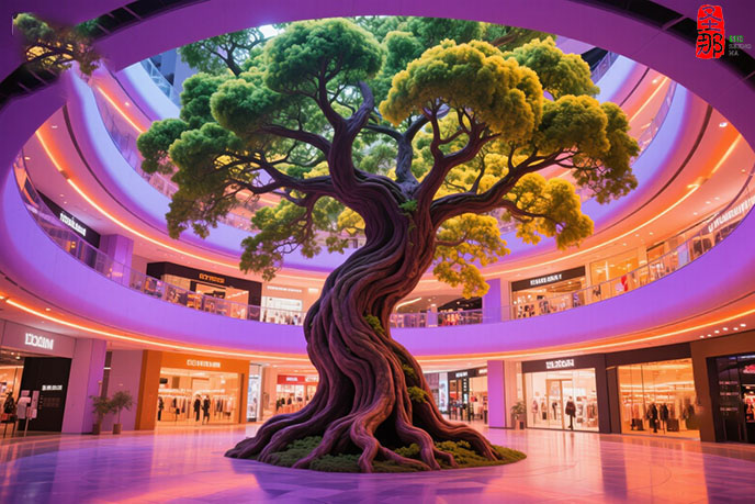 不合格的仿真樹就是丑的仿真樹。這棵樹的樹干表面光禿,沒有任何修飾,樹枝從主干伸出很生硬,樹的每個(gè)元素都像立的,相互間沒有襯托,顯色生硬,沒做保護(hù)層,假山是沒有任何質(zhì)感,甚至使人沒有山的感覺。