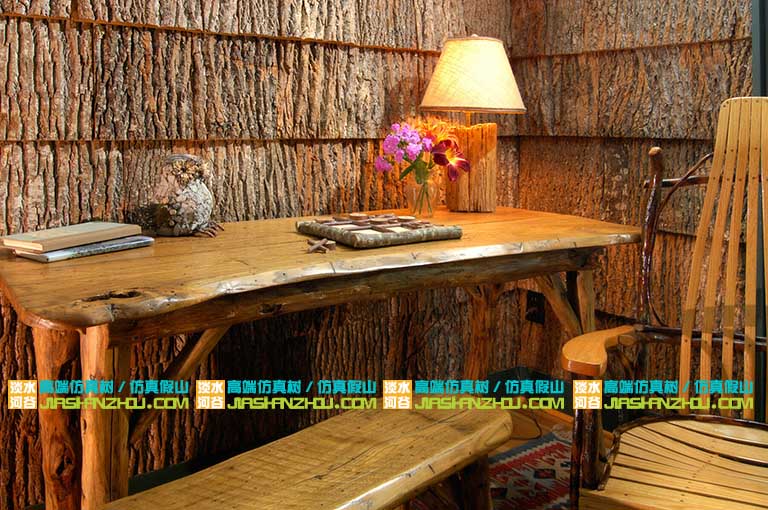 仿真樹皮墻面裝飾是歌廳酒吧主題民宿的選