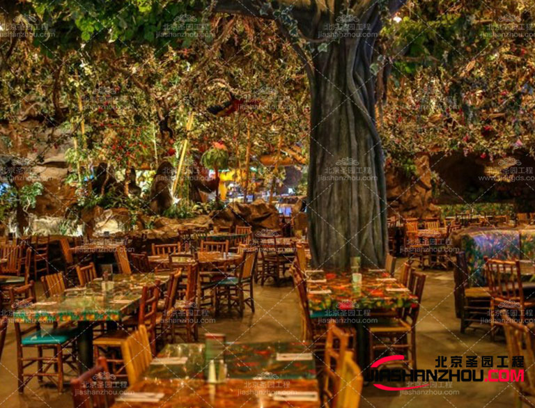 散發(fā)出茶色的光芒,散發(fā)出玫瑰色的光芒,夜晚的仿真洞穴轟趴館要求光線柔和而微妙。調(diào)暗明亮的頭頂燈,將茶燈散落在桌子和餐具柜上不匹配的銀色支架中。磨砂仿真洞穴轟趴館上的節(jié)日燈會在餐桌上散發(fā)出溫暖的光芒。