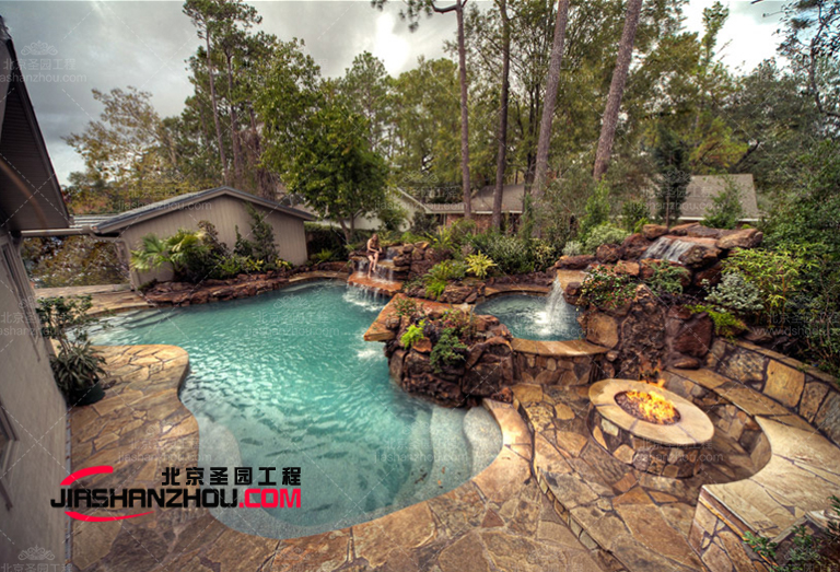 1、水泥假山魚池與庭院設(shè)計