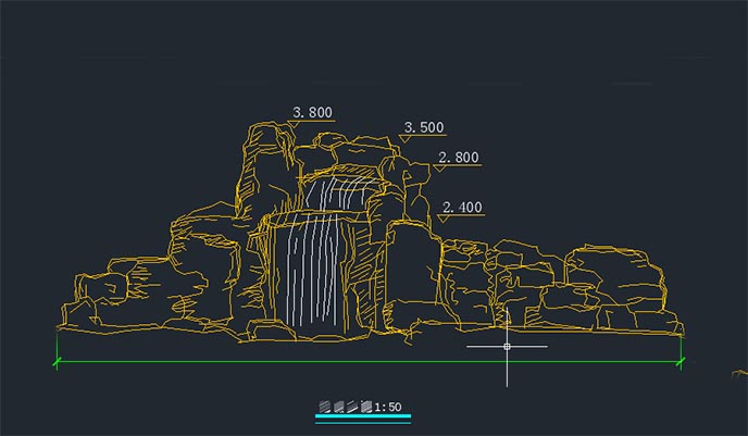 每張塑石假山施工圖、每個塑石假山都有一個故事。當(dāng)時甲方找到北京廠家,要求為他們塑石假山,并把大約長度、寬度、高度告訴我們。我們?yōu)榧追骄妥隽巳缦碌乃苁偕绞┕D。